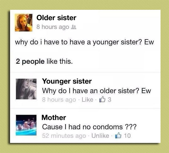 The Comment My Cousin Made To A Post My Sister Shared On Facebook Thatsthejoke Thinking about a caption to use it for your sister instagram photos of happy moments , we have collected around 120+ cute instagram captions for sisters photos.