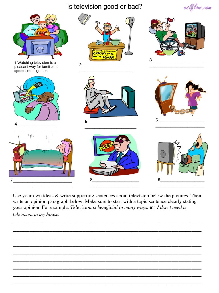 Topic Sentence About Television - Use your own ideas & write supporting sentences about television below the pictures.